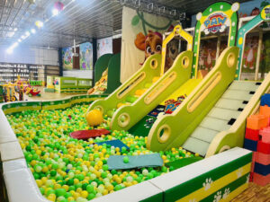 Các bé mà bước vô nhà banh là như lạc vào một thế giới đầy màu sắc 🌈💛💚🤍. Nào là hàng ngàn quả banh xanh – vàng – trắng tung tăng, nào là cầu trượt siêu xinh để tha hồ thả mình bay xuống, tiếp đất trong biển banh mềm mại siêu đã 😍.